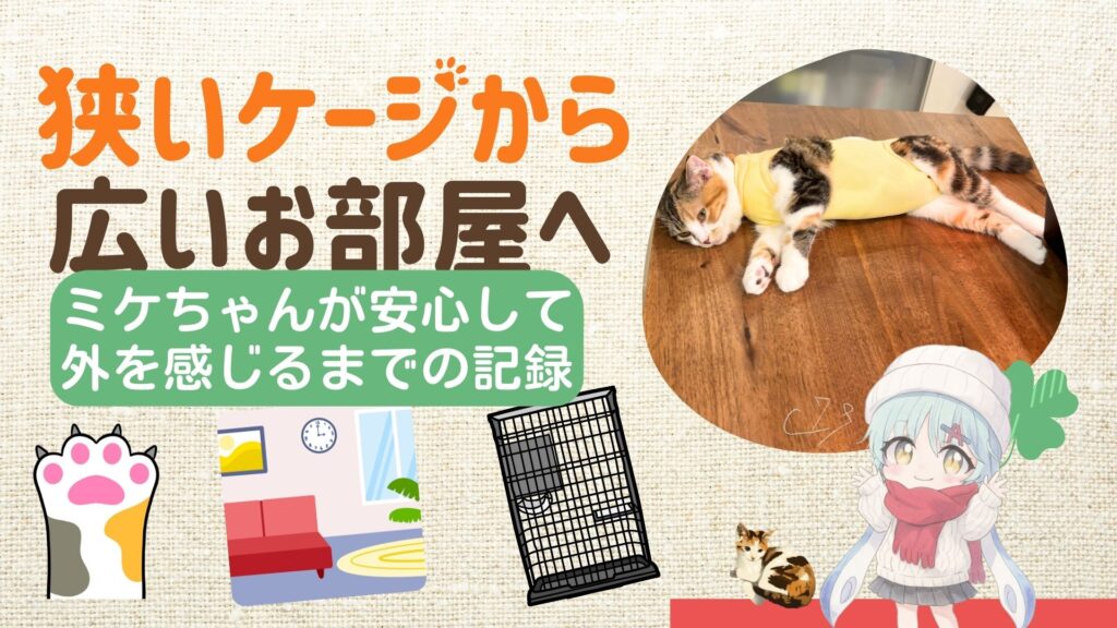 狭いケージから広いお部屋へ。ミケちゃんが安心して外を感じるまでの記録