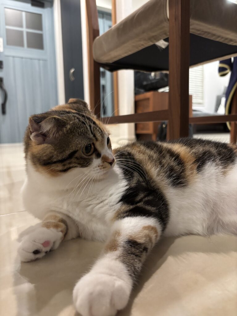 三毛猫スコティッシュフォールドの三毛猫を家族に迎え入れました♥️