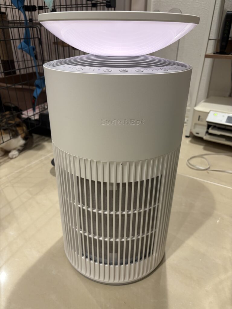 我が家では、上記の4つのポイントを満たしているSwitch Bot空気清浄機を導入することにしました😄1台はミケちゃんのお部屋に、もう1台はリビングに置いています。猫ちゃんが乗っても問題ない設計(というか乗ることを想定していると思います)になっています☺️