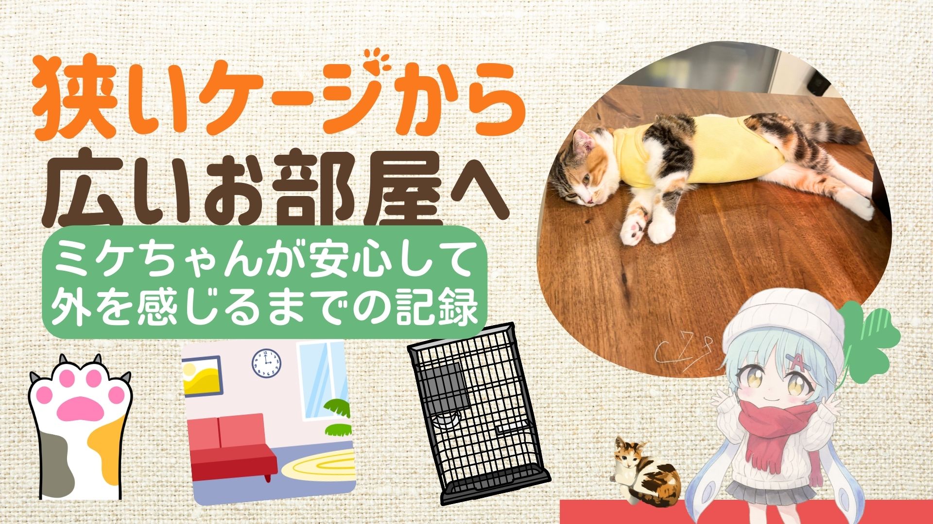 狭いケージから広いお部屋へ。ミケちゃんが安心して外を感じるまでの記録